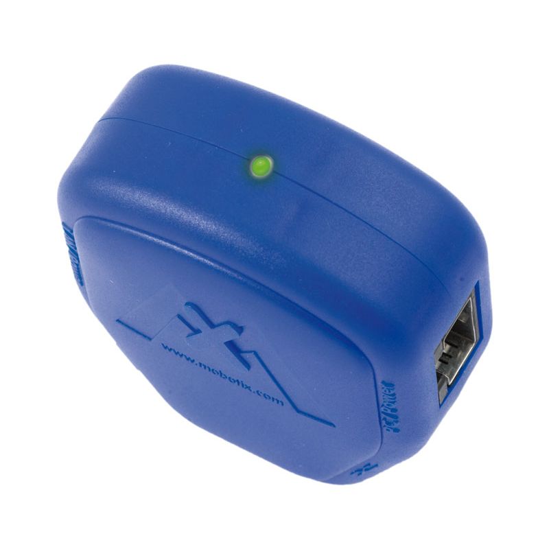 MOBOTIX MX-NPA-PoE-RJ PoE injector (IEEE 802.3af) incl. crossover function for direct connection to the PC - Blue adapter with 3 sockets RJ45 and universal power supply with RJ45 plug - Without power plug, additional power supply (12 to 57 V DC) and connection cable needed