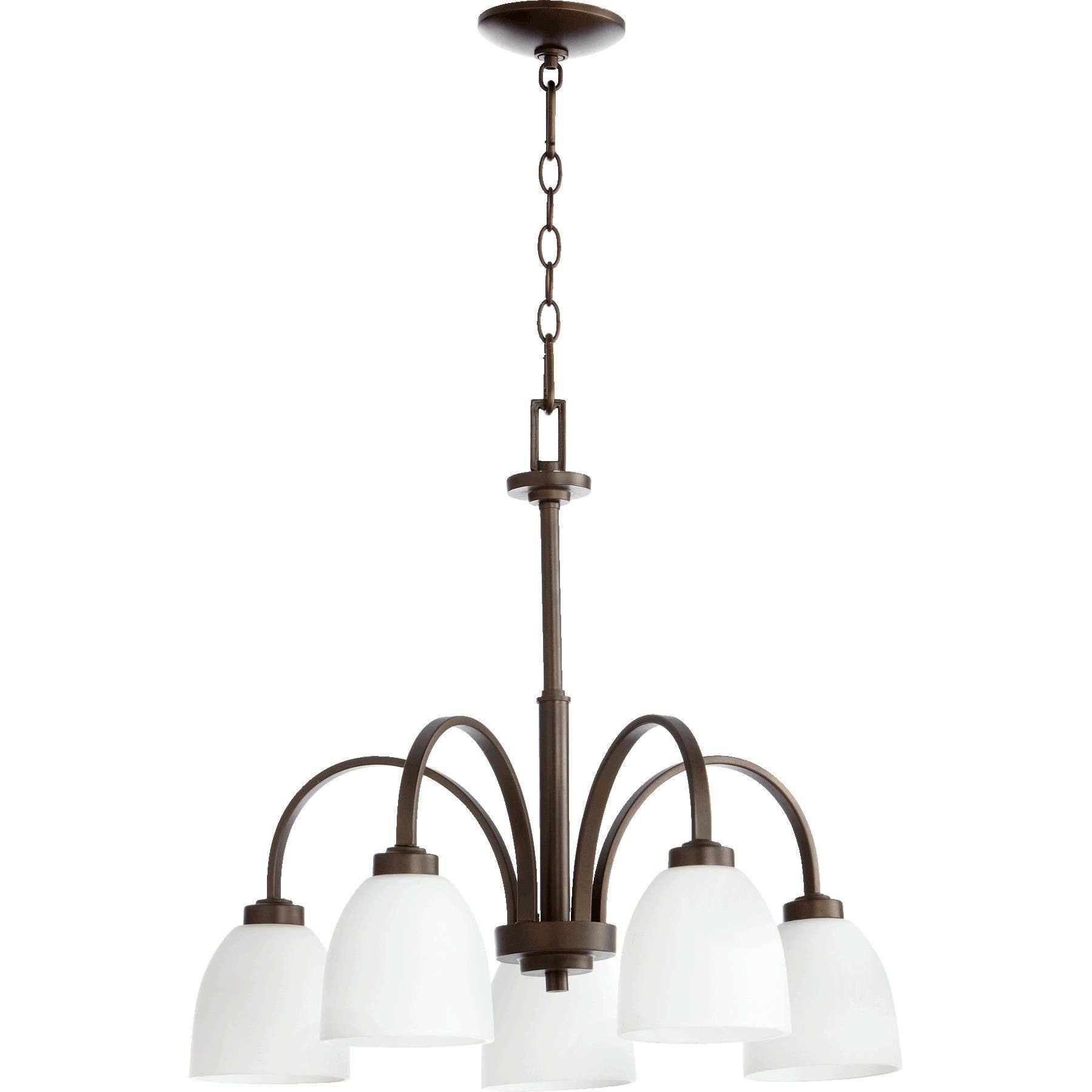 Quorum International 6360-5-86 Chandeliers with Satin Opal Shades, Oiled Bronze