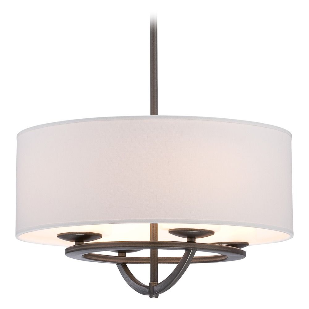 George Kovacs Lighting P1813-172 Circuit-Four Light Drum Pendant in Transitional Style-18 Inches Wide by 10.25 Inches Tall, Smoked Iron Finish with Etched Opal Glass with White Fabric Shade