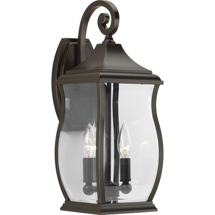 Progress Lighting Township Collection 2-Light Clear Beveled Glass New Traditional Outdoor Medium Wall Lantern Light Oil Rubbed Bronze