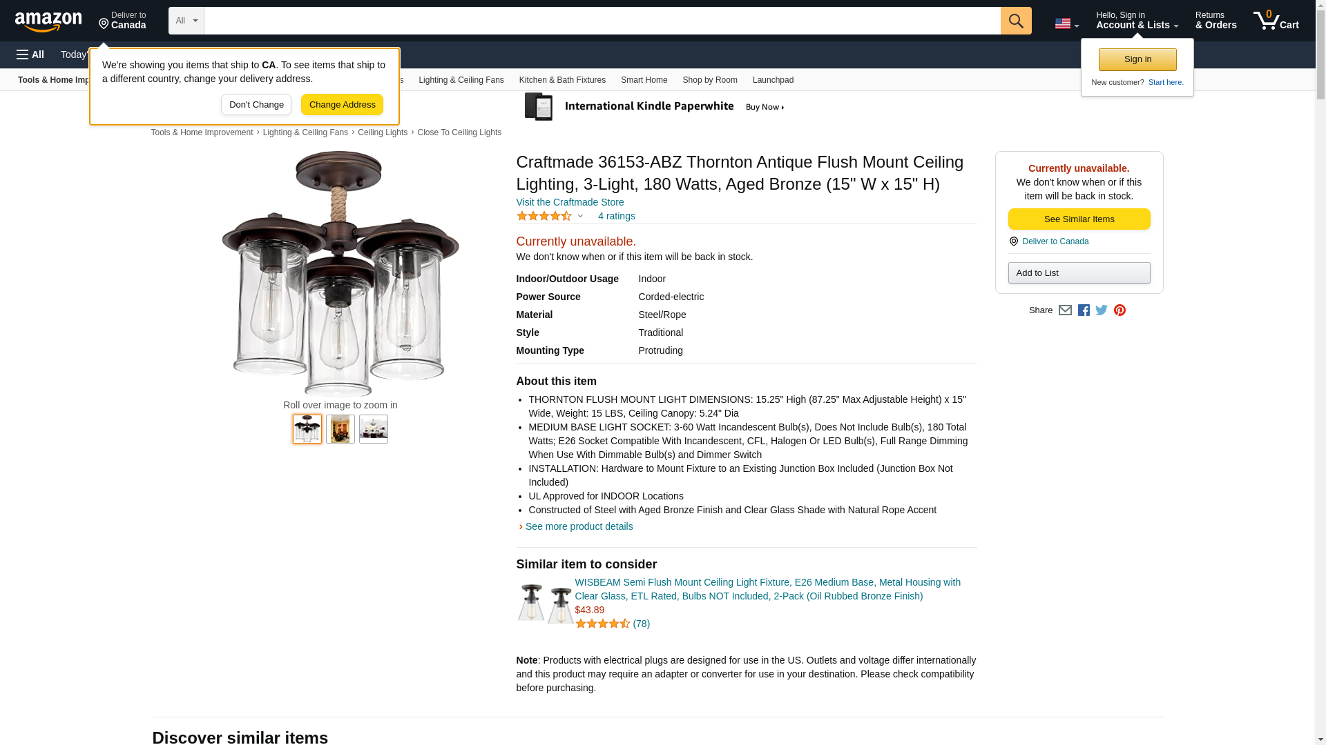 ![]() gordonelectricsupply.com | 36153-ABZ | 1 | Craftmade Orders usually Ship Next Day | 1 | 1 @ $251.50 |