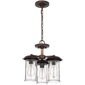 - Constructed of Steel with Aged Bronze Finish and Clear Glass Shade with Natural Rope Accent