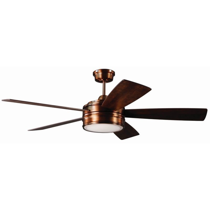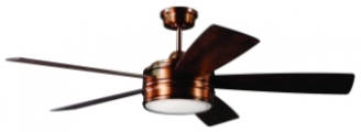 - MATERIALS: Designed with a Brushed Copper body, this Indoor Ceiling Fan was crafted with Five Dark Cedar/Chestnut Plywood blades
