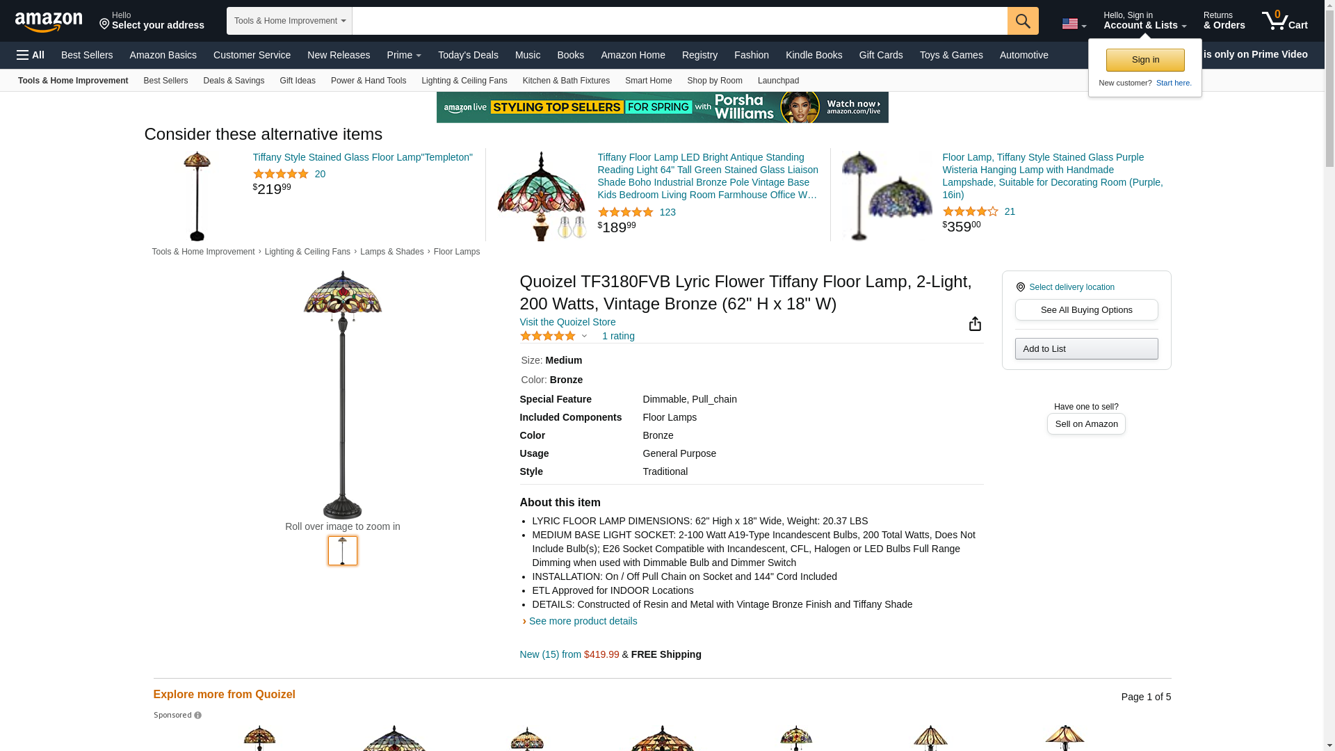 Quoizel TF3180FVB Lyric Flower Tiffany Floor Lamp, 2-Light, 200 Watts, Vintage Bronze (62" H x 18" W)