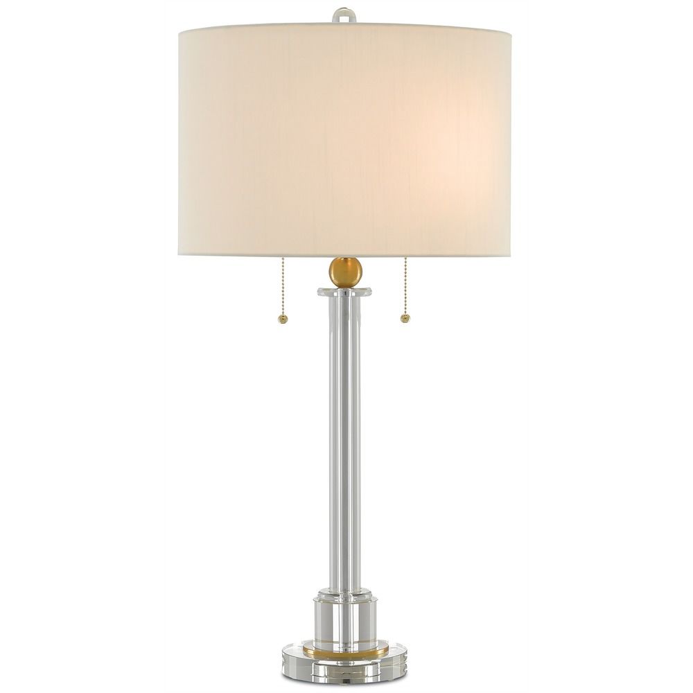 Currey and Company 6000-0211 Larsa - Two Light Table Lamp, Clear/Antique Brass Finish with Off White Shantung Shade