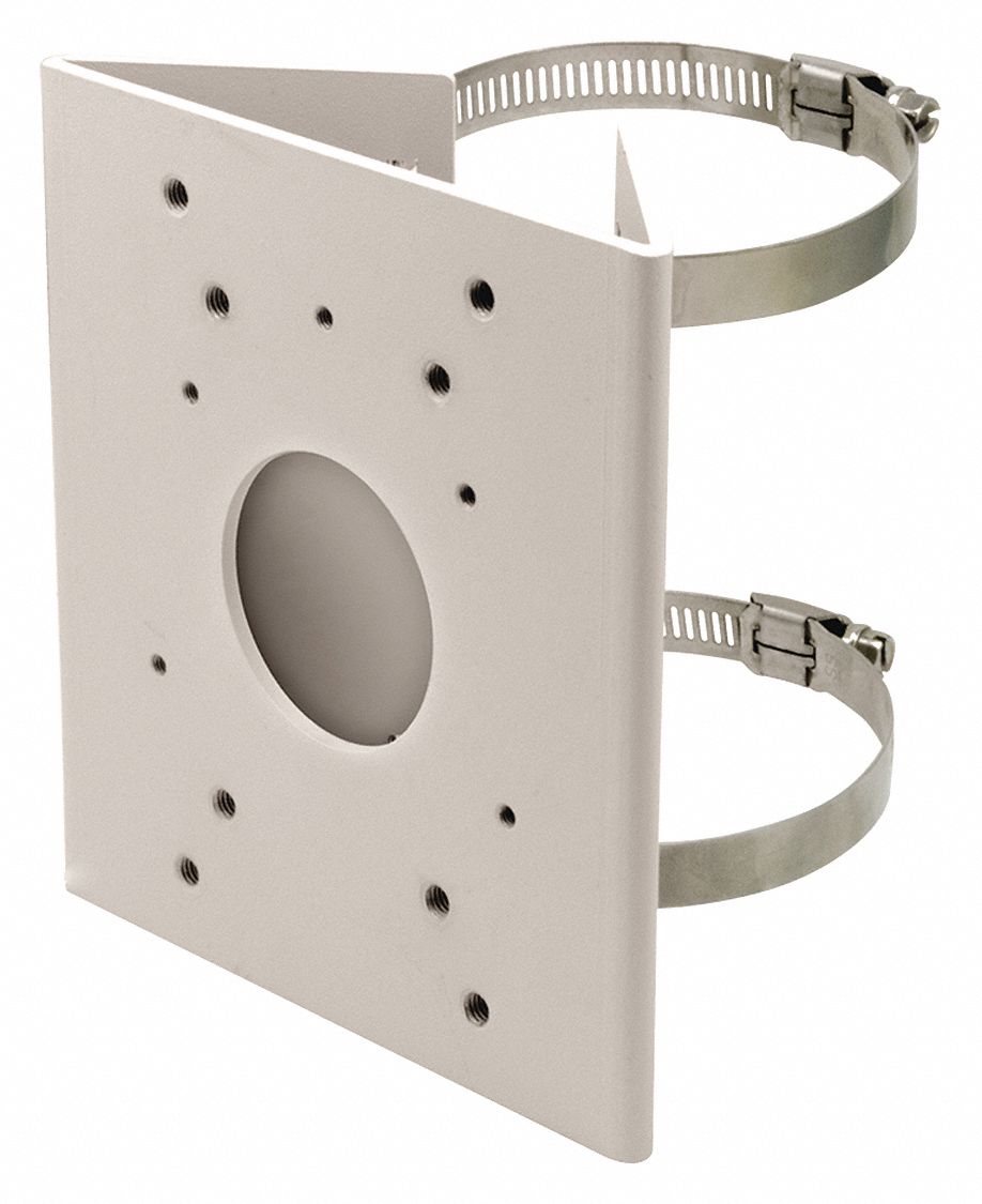 Pole Mount Adapter For Use With Bullet Cameras Fits Bullet Cameras Material Metal Mounting Pole Height 9-5/16 In. Width 9-29/64 In. Length 6-5/16 In. Color White Function Camera Mounting Characteristics Adapt from 2 in to 3 in.
