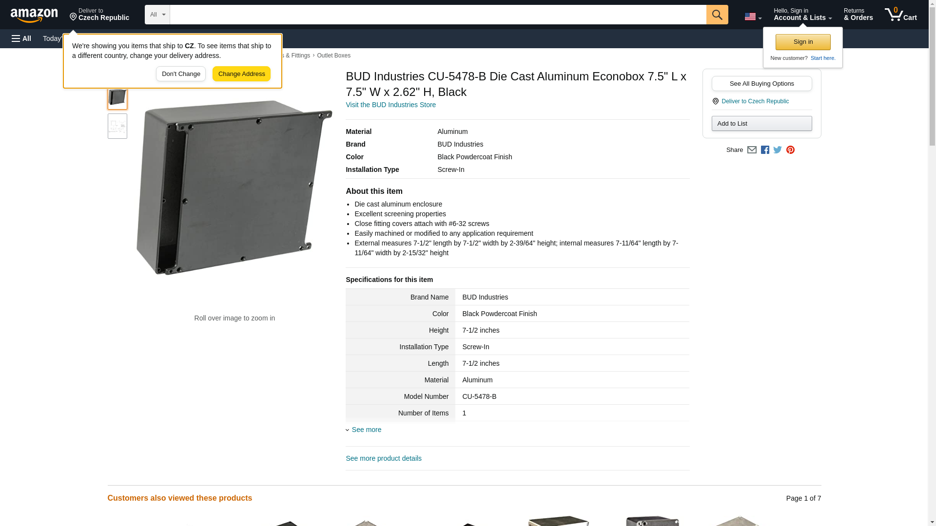 BUD Industries CU-5478-B Die Cast Aluminum Econobox 7.5" L x 7.5" W x 2.62" H, Black