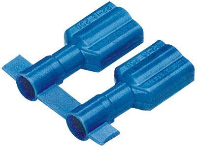 | Feature | <b>Price For:</b> Pack of 100 <b>Manufacturer</b>: Panduit <b>Product Category</b>: Terminals <b>RoHS</b>: <b>Brand</b>: Panduit <b>Product</b>: Quick Disconnects <b>Stud / Tab Size</b>: 6.35 mm x 0.81 mm <b>Wire Gauge</b>: 16 AWG - 14 AWG <b>Gender</b>: Female <b>Insulation</b>: Insulated <b>Color</b>: Blue <b>Termination Style</b>: Crimp <b>Contact Plating</b>: Tin <b>Contact Material</b>: Brass <b>Insulation Material</b>: Nylon <b>Length</b>: 21.3 mm |