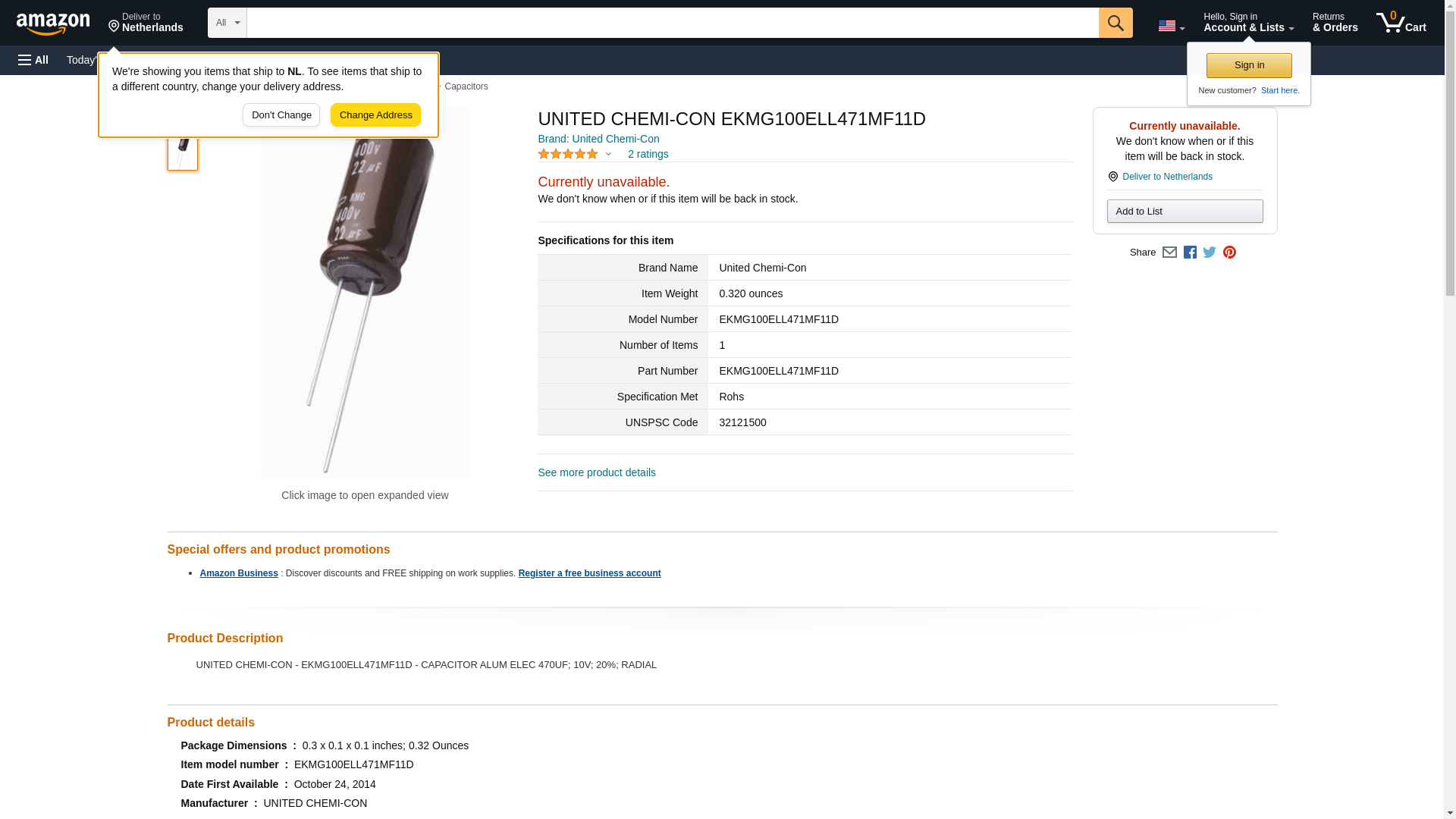 | EKMG100ELL471MF11D | 345 | 2000 | 1 | 345 @ $0.18, 10000 @ $0.18 | |