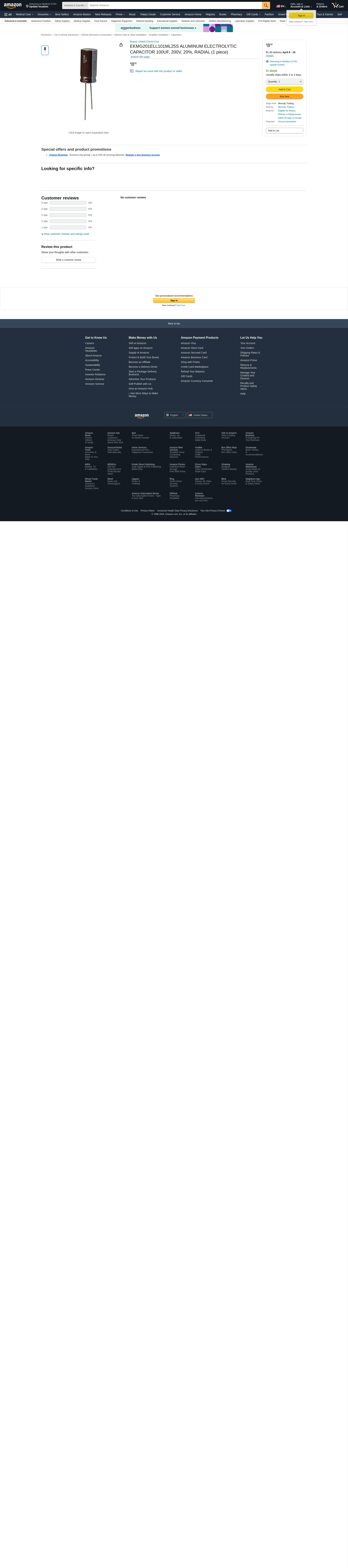 UNITED CHEMI-CON EKMG201ELL101ML25S KMG Series 100 uF 200 V ±20% Through Hole Radial Aluminum Electrolytic Capacitor - 10 item(s)