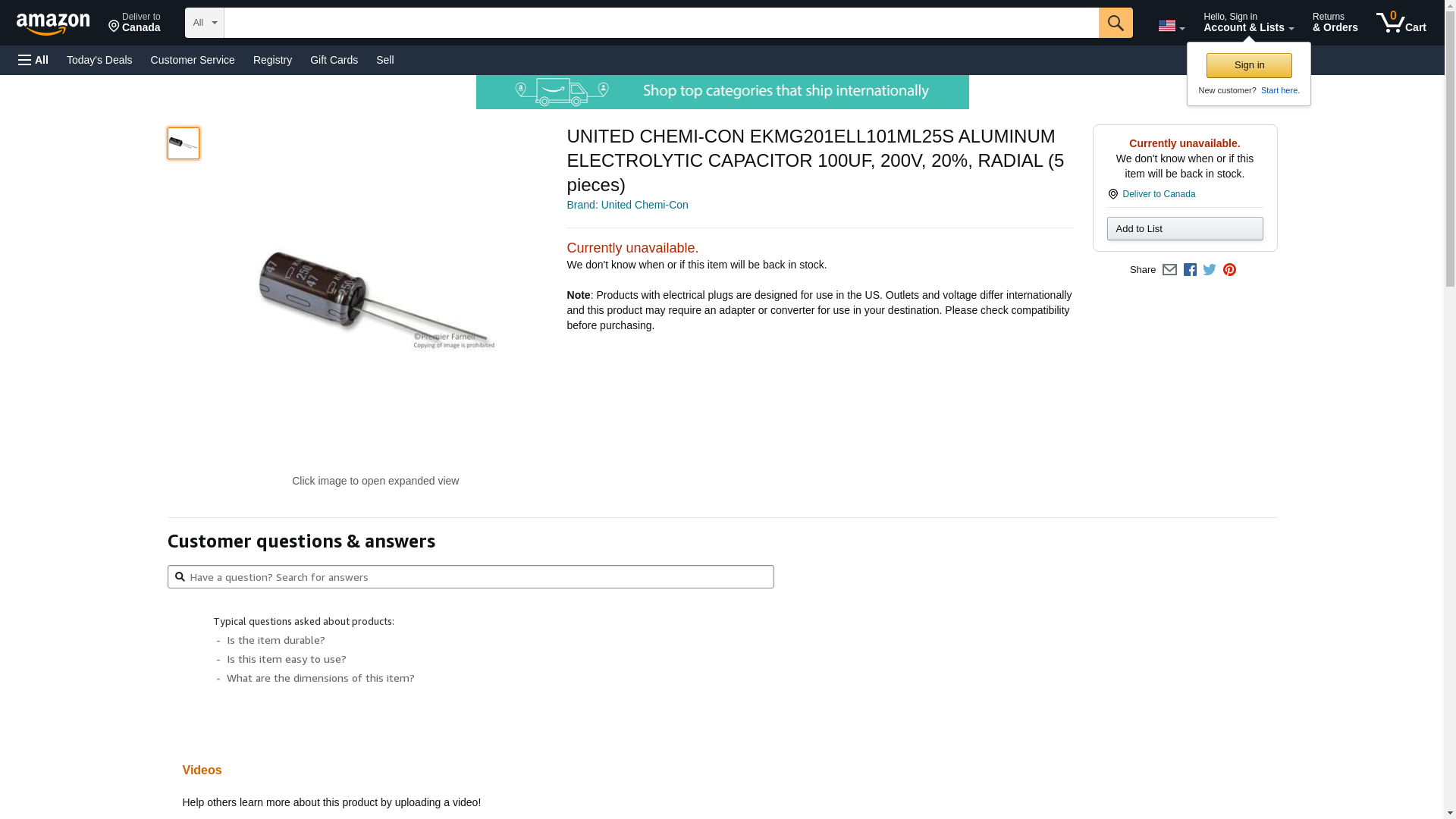 | EKMG201ELL101ML25S | 1 | 4991 | 1 | 1 @ $1.07, 25 @ $1.01, 100 @ $0.86, 500 @ $0.82, 1000 @ $0.76, 2000 @ $0.69 |