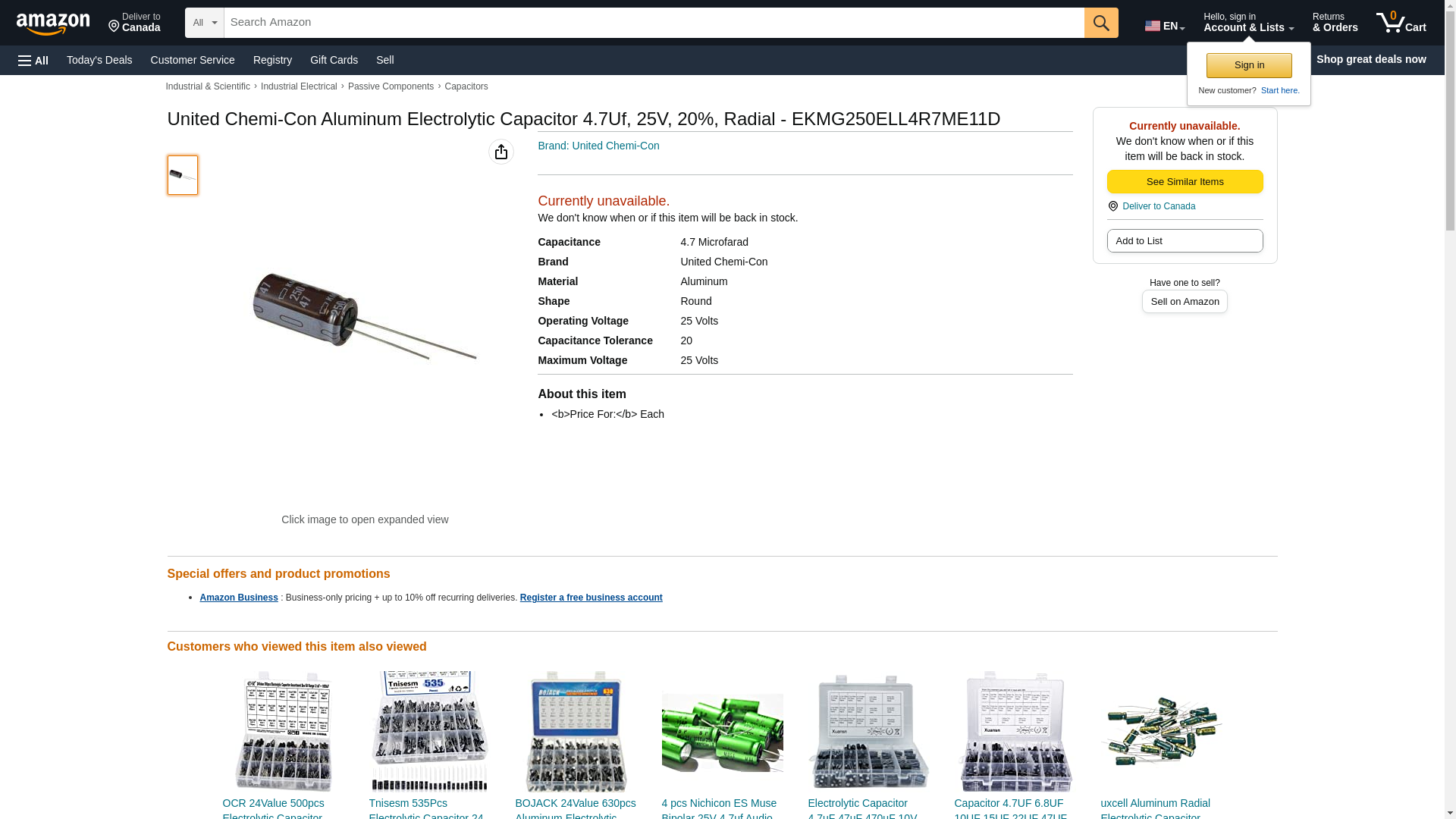 ![]() Radwell | EKMG250ELL4R7ME11D | 1 | 1 | 1 @ $0.20 | |