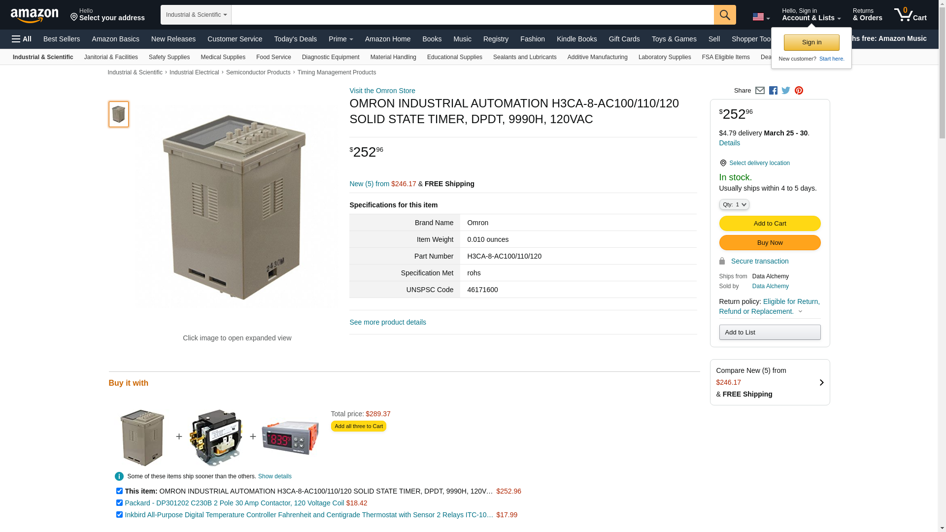 | Master Electronics | H3CA8AC100110120 | 1 | 5 | 1 | 1 @ $206.61, 3 @ $205.06 |