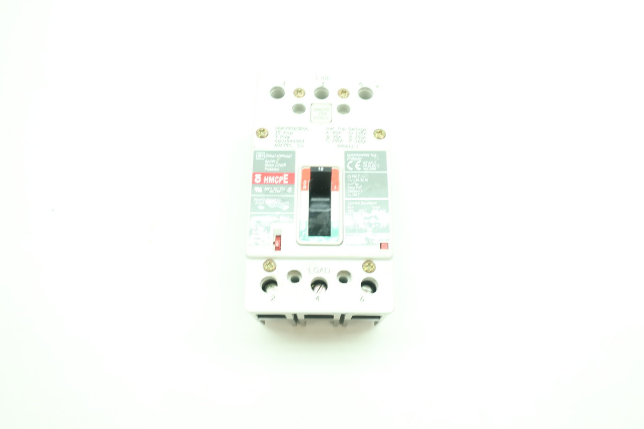 Images are for representation purpose only. Actual product may differ from specifications shown in photo. To check if the actual product is shown in image, or to request additional photos, please send us a message.<ul><li>HMCPE015E0C</li><li>Cutler Hammer</li><li>Molded Case</li><li>Series G</li><li>HMCPE</li><li>3 Phase</li><li>3 Pole</li><li>480 Volt</li><li>15 Amp</li><li>Feed-Thru</li><li>Magnetic Only</li><li>(I) Instantaneous</li><li>15kA@400V</li></ul>Depending on the item, some prices may be negotiable. Feel free to send us a message and make us an offer. We'd be happy to work with you within your budget, and all reasonable offers will be considered. We do our best to respond to most messages within one business day. Breaker Outlet specializes in new and obsolete circuit breakers, motor control, switchgear, and other electrical distribution. We have an extensive offline inventory, so if there's something you need that's not listed, please contact us and we may be able to get it for you. Our knowledgeable customer service team is here to help you with any questions, and we look forward to the opportunity to meet your electrical needs.