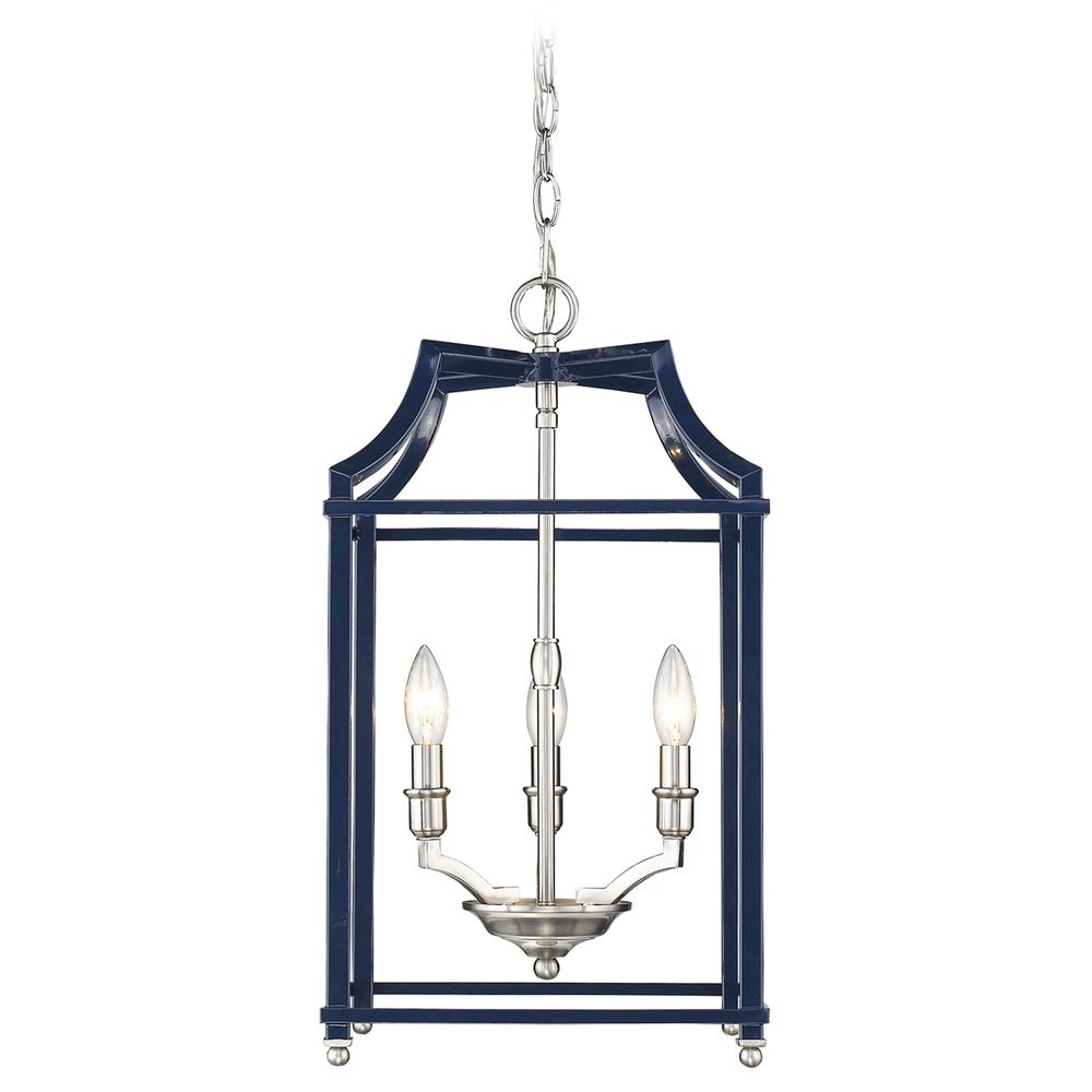 Leighton 3-Light Pendant in Pewter & Navy by Golden Lighting | 8401-3PPW-NVY | Destination Lighting