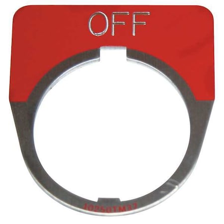 The EATON legend plate is a half round plate for 30.5mm push button operators and indicating lights.<br /><br /> Item: Legend Plate<br /> Shape: 1/2 Round<br /> Legend: Off<br /> For Use With: 30.5mm Pushbutton Operators and Indicating Lights<br /> Legend/Background Color: Red<br /> Material: Aluminum<br /> Height: 1.75"<br /> Width: 1.75"<br /> Diameter: 30mm<br />