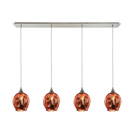 10502/4LP ELK Lighting Morph 4-Light Linear Pendant Fixture In Satin Nickel With Copper-Plated Blown Glass