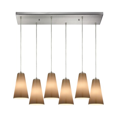 10940/6RC ELK Lighting Connor 6-Light Rectangular Pendant Fixture In Satin Nickel With Peach Blown Glass