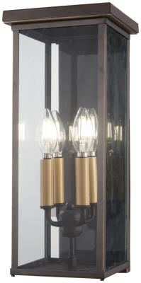 Smooth lines and a geometric silhouette make this four-light outdoor pocket wall light a great addition to an entrance. From Minka Lavery, clear glass shades create an open aura and allow maximum shine from the modern, exposed lightbulbs. Crafted from metal, the frame features an oil-rubbed bronze finish with hints of dimension in the form of gold highlights.