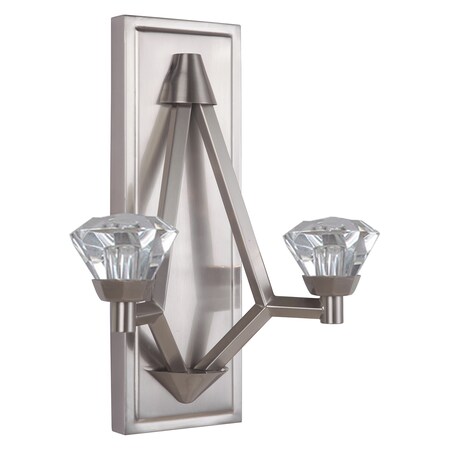 Craftmade 49762-BNK-LED Radiante Crystal LED Wall Sconce Lighting, 2-Light, 16 Watts, Brushed Polished Nickel (11" W x 14" H)