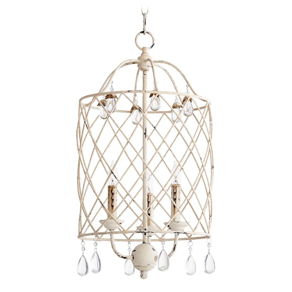 Quorum 6944-3-70 Crystal Accents Three Light Entry Pendant from Venice Collection in White Finish,