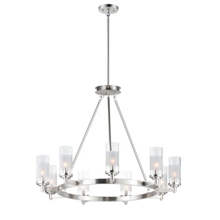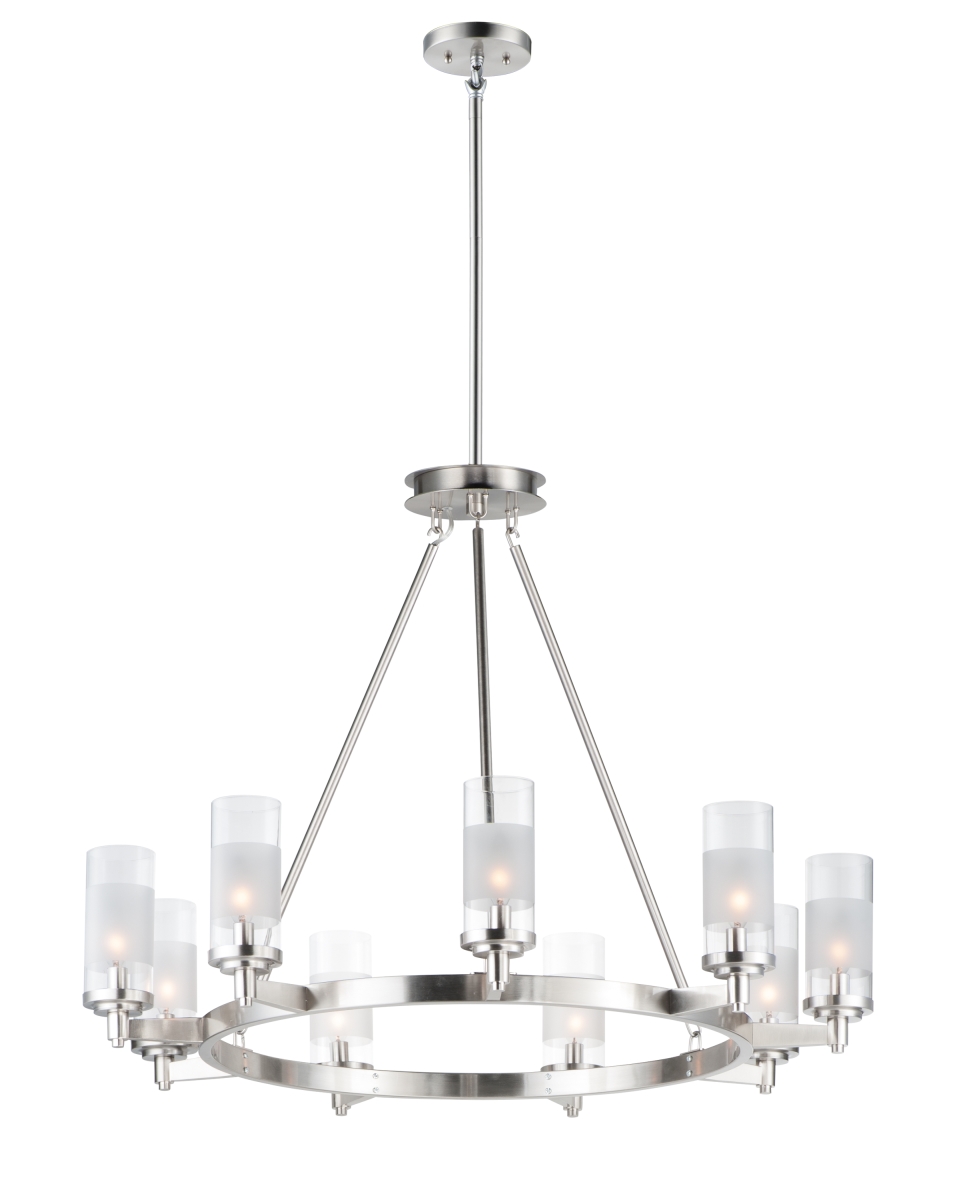 Maxim 26327CLFTSN Crescendo Clear & Frosted Cylindrical Glass Chandelier, 9-Light 540 Total Watts, 26"H x 35"W, Satin Nickel