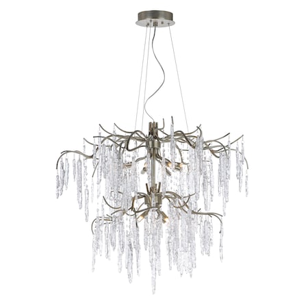 Maxim Lighting-26288ICSG-Collection: Willow, Material: Glass, Finish Color: Silver Gold, Width: 35", Height: 31", Length: 35", Lamping Type: Xenon, Number Of Bulbs: 12, Wattage: 40 Watts, Lumens: 5880, Dimmable: Yes, Moisture Rating: Dry Rated, Desc: Metal is formed in a branch-like design and finished in a rich Silver Gold. Handmade pendants of Piastra like Ice glass are draped from the frame to complete this designer look. Rated Lifetime Hours: 2000 / Canopy Included: Yes / Canopy Diameter: 6.25 / Dimable: Yes / Shade Included: Yes. ,-Willow - Twelve Light 2-Tier Chandelier