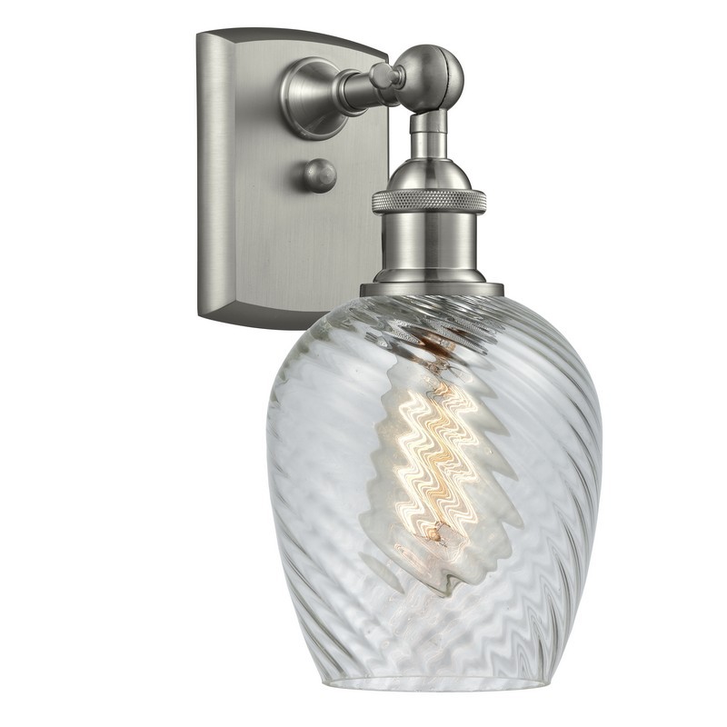INNOVATIONS LIGHTING 516-1W-SN-G292-LED BALLSTON SALINA 5 INCH ONE LIGHT UP AND DOWN CLEAR SPIRAL FLUTED GLASS WALL...