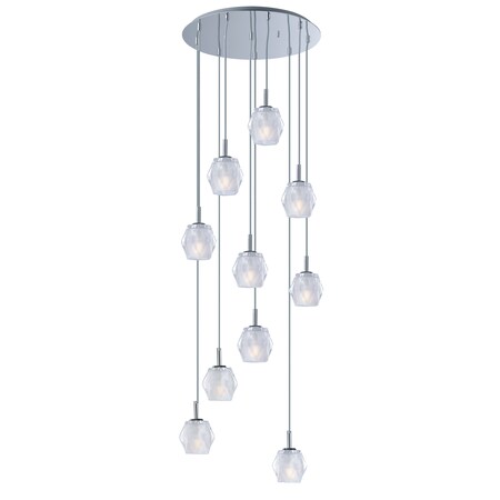 ET2 E20717-82PC Tangent Heavy Faceted Glass Wind Chime Round LED Pendant Ceiling Lighting, 10-Light 40 Watts, 6"H x 20"W, Polished Chrome