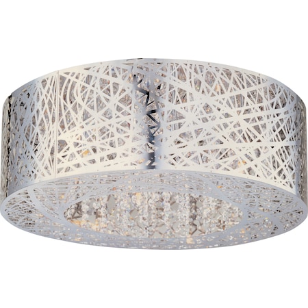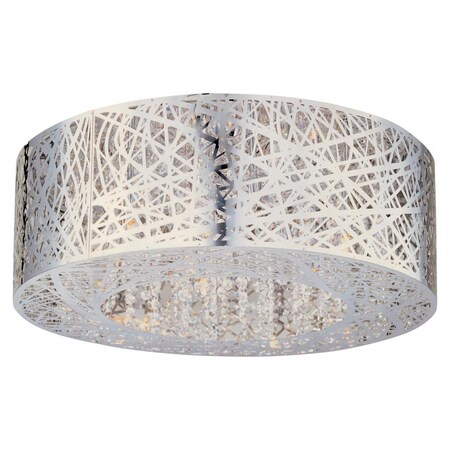 ET2 E21301-10PC / BUL Inca Modern Metal Web Laser-Cut Sheath with Crystal Drum LED Flush Mount Ceiling Lighting, 9-Light 26.1 Watts, 9" H x 24" W, Chrome