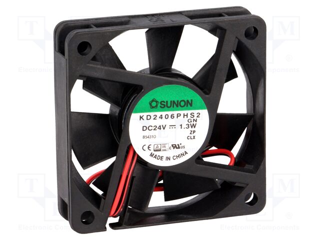 Sunon Fans KD2406PHS2.GN Fan; DC; 24V; 60x60x15mm; Sq; 18CFM; 1.3W; 31dBA; 3800RPM; Leadwires (50 pieces)