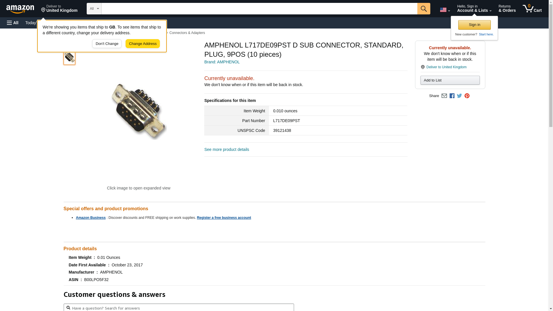 | Waldom | AMPHENOL ICC (COMMERCIAL PRODUCTS) L717DE09PST | 1 | 1 | ||