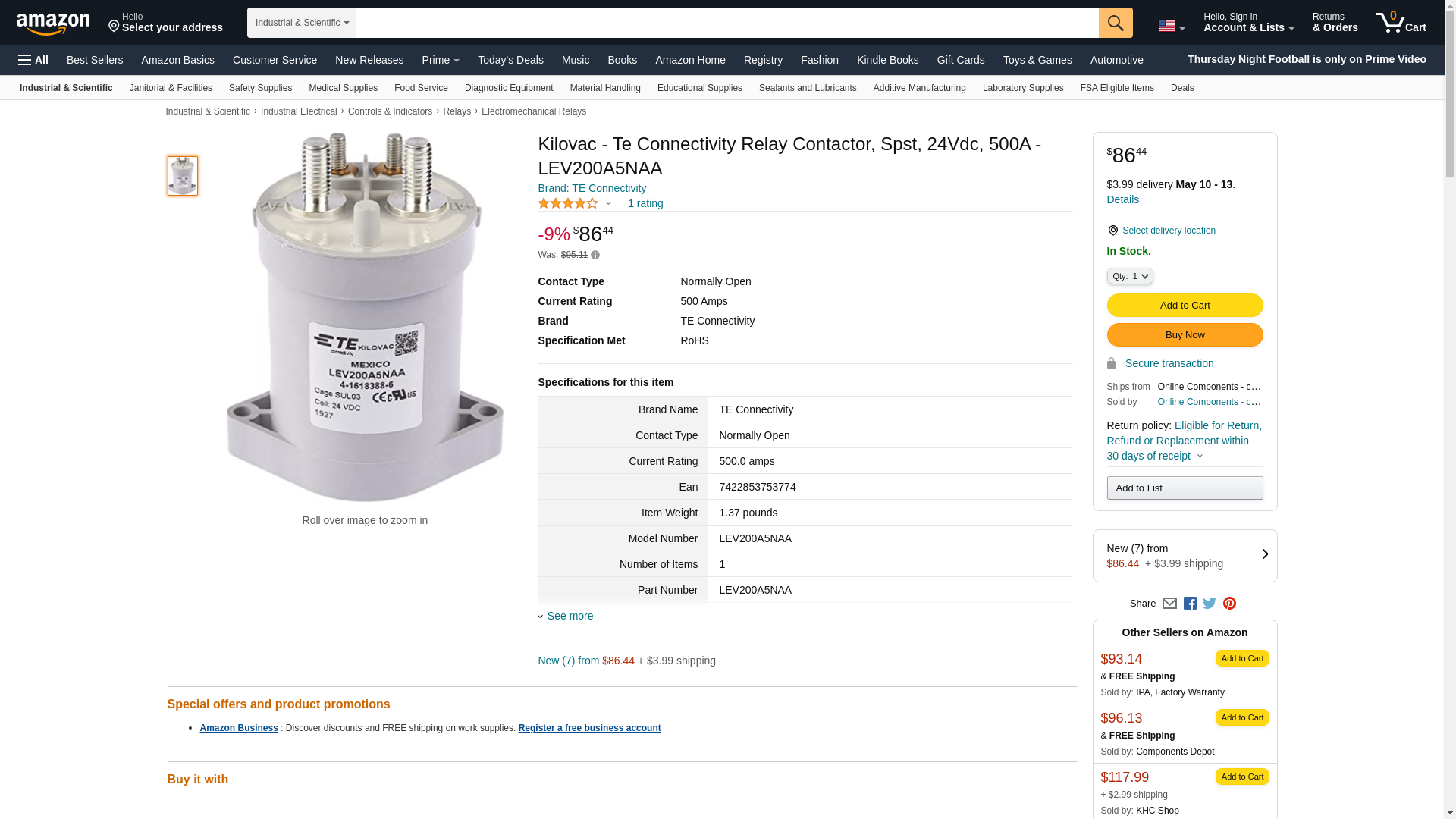| Waldom | TE CONNECTIVITY KILOVAC BRAND LEV200A5NAA | 1 | 128 | 1 | 1 @ $87.55, 4 @ $85.92, 7 @ $84.30, 13 @ $82.68, 40 @ $81.06, 50 @ $77.58, 100 @ $71.79 |