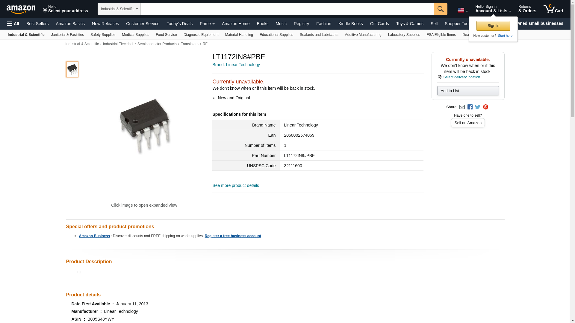 | iodParts | LT1172IN8#PBF | 100 | 950 | 100 | 100 @ $4.79, 150 @ $4.64, 300 @ $4.50, 600 @ $4.35 |