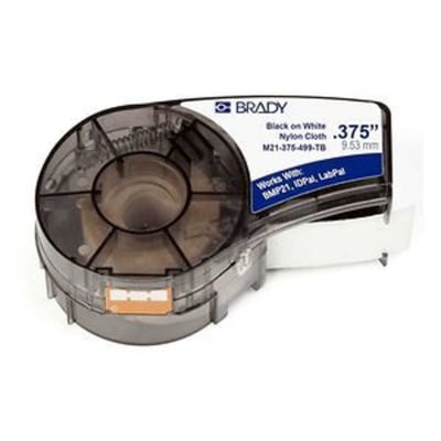 <p><strong>Brady, M21-375-499-TB, 110938 0.375"x16' White BMP21 Series Nylon Cloth Label</strong></p><p>The B-499 material has a protective polyamide coating and permanent acrylic adhesive to stay adhered to surfaces, even in autoclave, freezer, and liquid nitrogen environments</p><ul><li>Nylon cloth tape is ideal for use in cable and wire labeling, general-purpose marking in labs, equipment panels, and faceplates</li><li>Low-profile tape adheres to surfaces that are smooth, rough, or powder coated, as well as to irregular surfaces or surfaces with low surface energy</li><li>RoHS compliant to 2005/618/EC MCV amendment to RoHS Directive 2002/95/EC; UL approved; CSA accepted</li><li>All-in-one cartridge includes ribbon and label supply</li></ul>