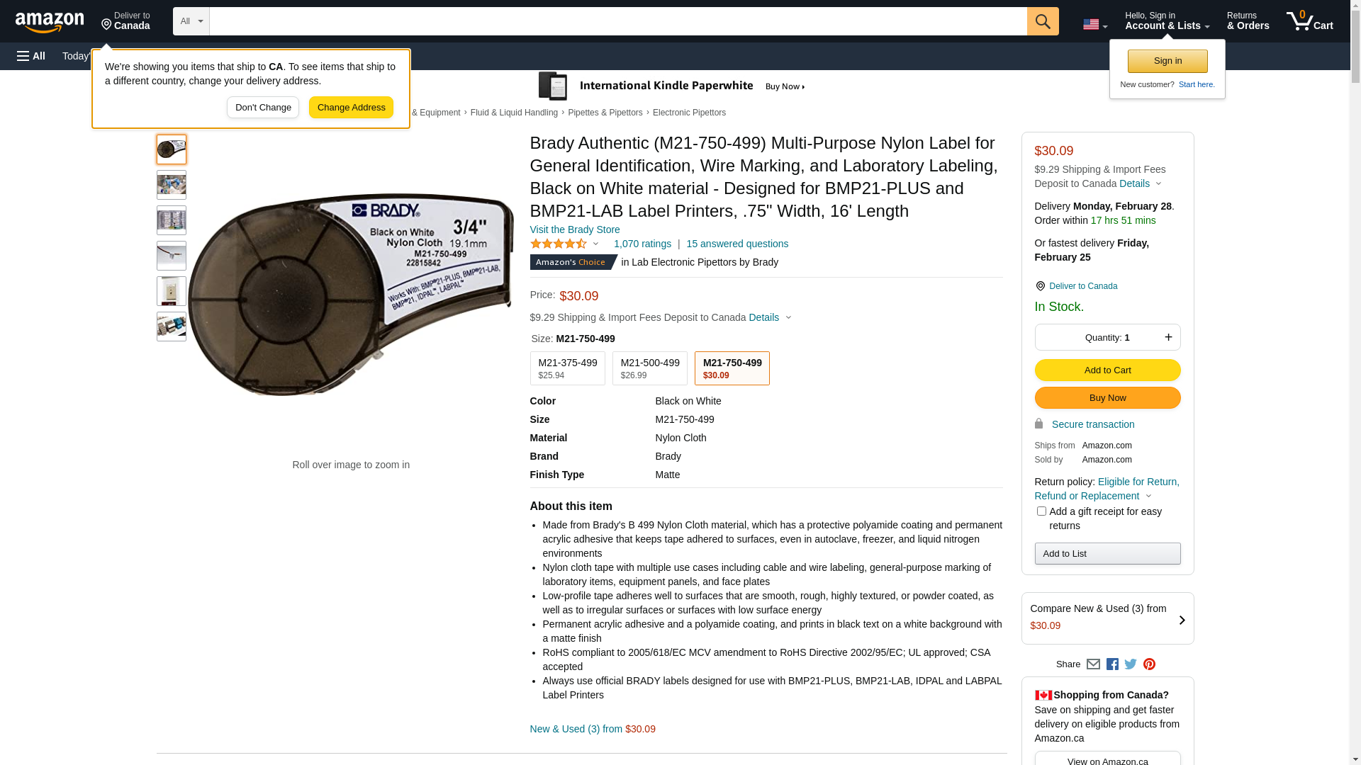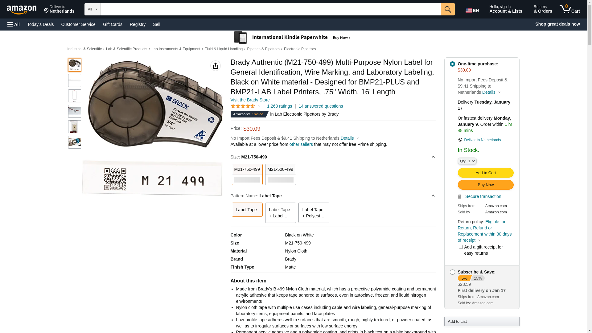 | BRADY M21-750-499 | 1 | 1 | 1 @ $37.40 | ||