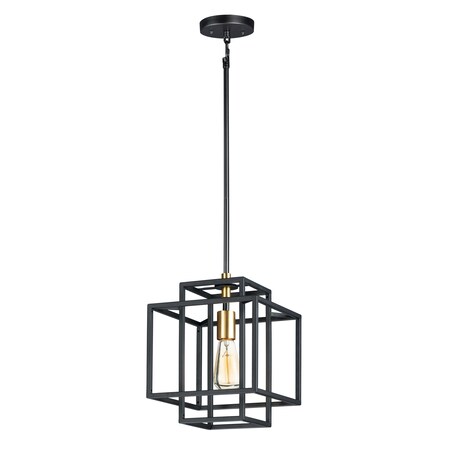 Maxim 10246BKSBR Liner Geometric Square Tubing Pendant, 1-Light 60 Watt, 13"H x 10"W, Black/Satin Brass