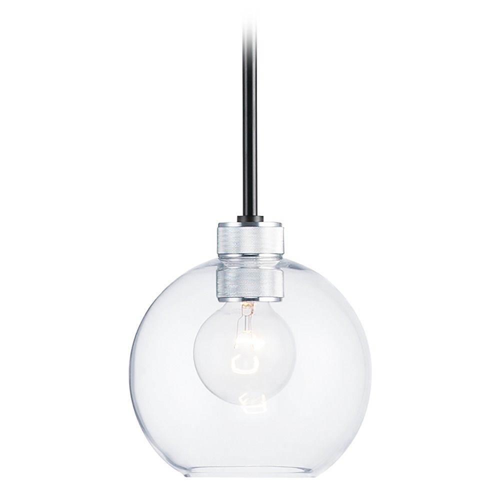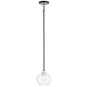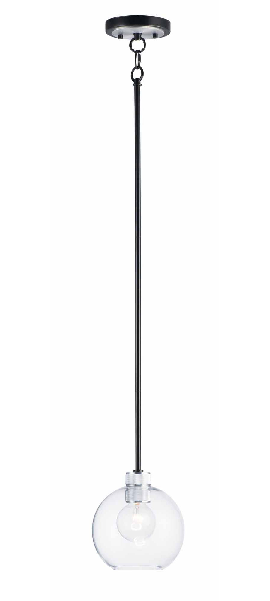 Maxim 21619CLBKAL Vessel Clear Hand-Blown Glass Sphere Pendant Ceiling Light, 1-Light 60 Watt, 9" H x 7" W, Black/Brushed Aluminum