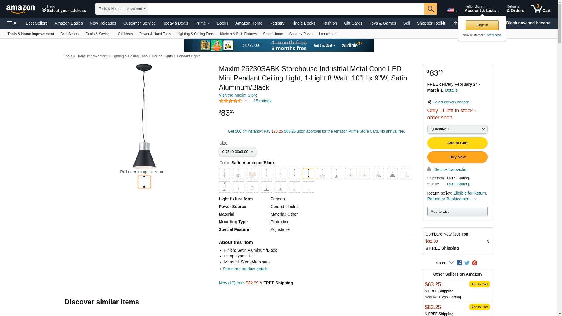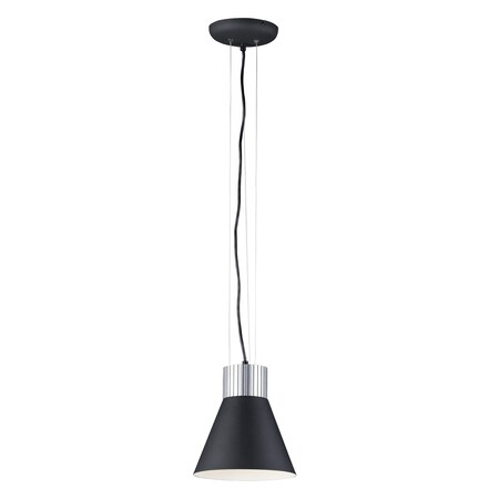 Maxim 25230SABK Storehouse Industrial Metal Cone LED Mini Pendant Ceiling Light, 1-Light 8 Watt, 10"H x 9"W, Satin Aluminum/Black