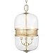 9 in. 60W 3-Light Candelabra E-12 Incandescent Clear Glass Pendant in Vintage Gold