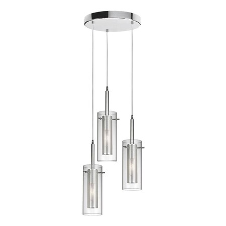 Dainolite 33963R-CM-PC 3-Light Pendant-Round Canopy, Clear Glass with Mesh Insert, Polished Chrome
