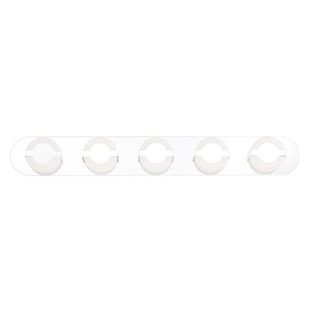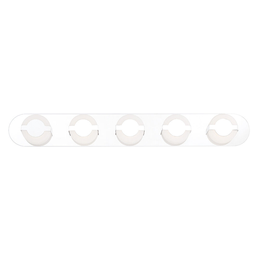 Eurofase 35666-011 Balewood Modern Acrylic Round Ring LED Bath Vanity Wall Mount, Damp Rated, 5-Light 35 Total Watts, 5"H x 37"W, Chrome
