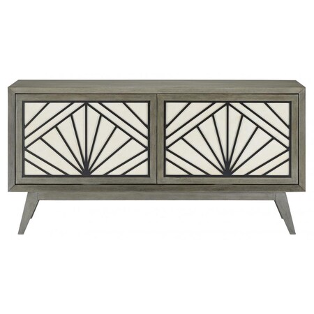 Currey and Company 3000-0128 Mika - 60 Inch Cabinet, Sea Sand Gray/Almond Cream/Forged Iron Finish