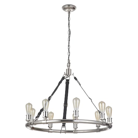 Craftmade 48129-PLN Huxley Chandelier Genuine Leather Accent, 9-Light, 540 Watts, Polished Nickel (25"H x 34"W)