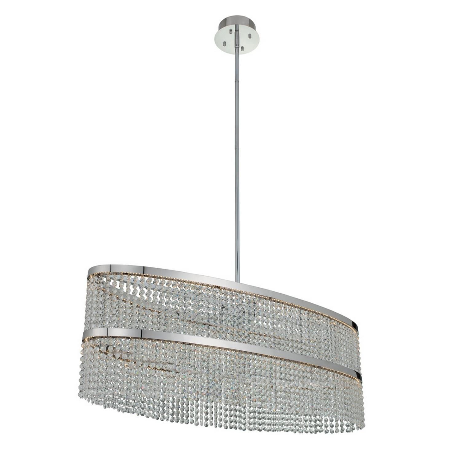 Allegri 036261010FR001 LED Isl Pendant Cortina Chrome The Collection offers romance and mystery by integrating LED light into its floating Polished Chrome (CH) rings. The light softly filters through brilliant Firenzevج��O crystal strands. LED Island Pendant Collection: Cortina Finish: Chrome Width: 14.00`` Height: 25.00`` Length: 44.00`` Safery Rating: UL Safety Listing: Dry LED 70.00W 6300.00lm, Included UL Approved Hardiwred Bulbs Not Included