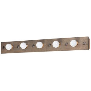Maxim 25244WWDAB Plank Bath Vanity Lighting, 5-Light 300 Watts, 6"H x 48"W, Weathered Wood/Antique Brass