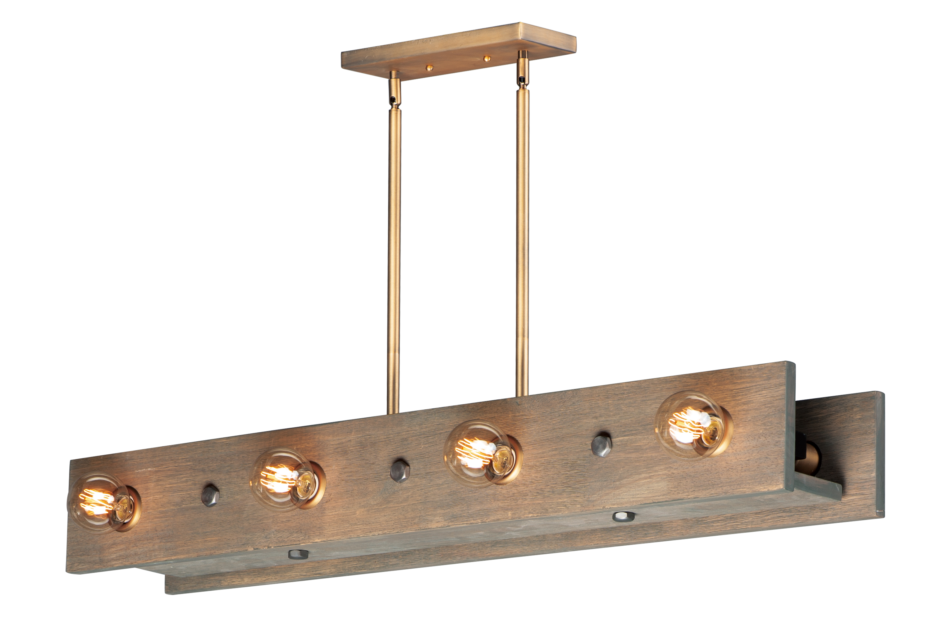 This 8 light Linear Pendant from the Plank collection by Maxim will enhance your home with a perfect mix of form and function. The features include a Weathered Wood/Antique Brass finish applied by experts. Product Features Include: Brand: Maxim, Collection: Plank, SKU: 25247WWDAB, UPC: 783209231641, Category: Island Light, Finish: Weathered Wood/Antique Brass, Material: Wood/Steel, Length: 43.50 in., Width: 9.00 in., Height: 6.00 in., Backplate/Canopy Width: 11.00 in., Backplate/Canopy Length: 4.75 in., Backplate/Canopy Thickness: 0.75 in., Weight: 25.30 lb., Included Lead Wire: 120.00, Warranty: 1 Year, Bulbs Included: No, Bulb Category: Incandescent, Primary Bulb(s): 8 x 60.00 watts E26 Medium G25, Voltage: 120, Safety Rating: cULus Dry