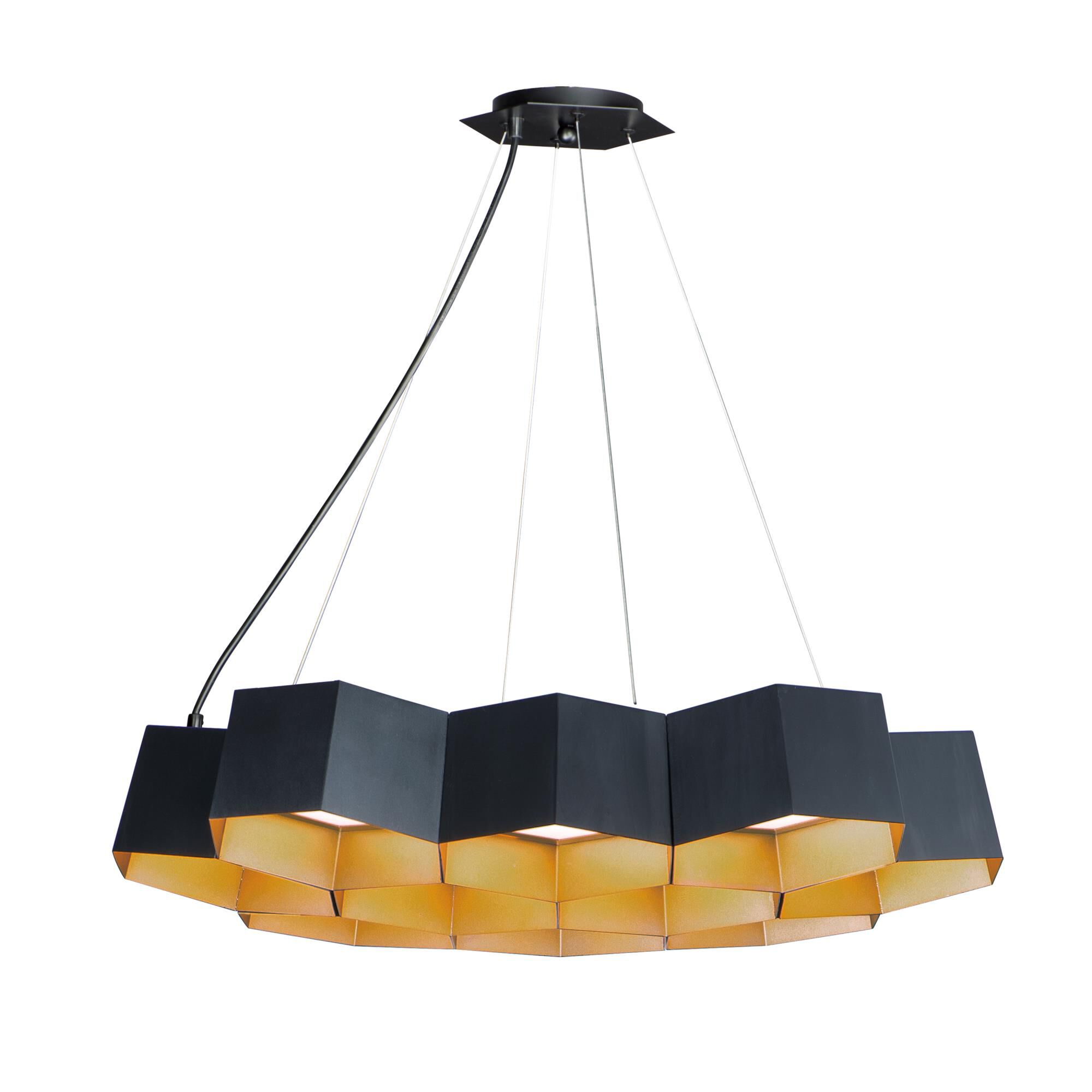Maxim 30338BKGLD Honeycomb Metal Hexagon LED Pendant Ceiling Light, 10-Light 100 Total Watts, 7" H x 23" W, Black/Gold