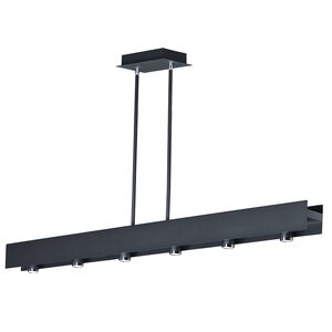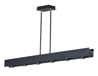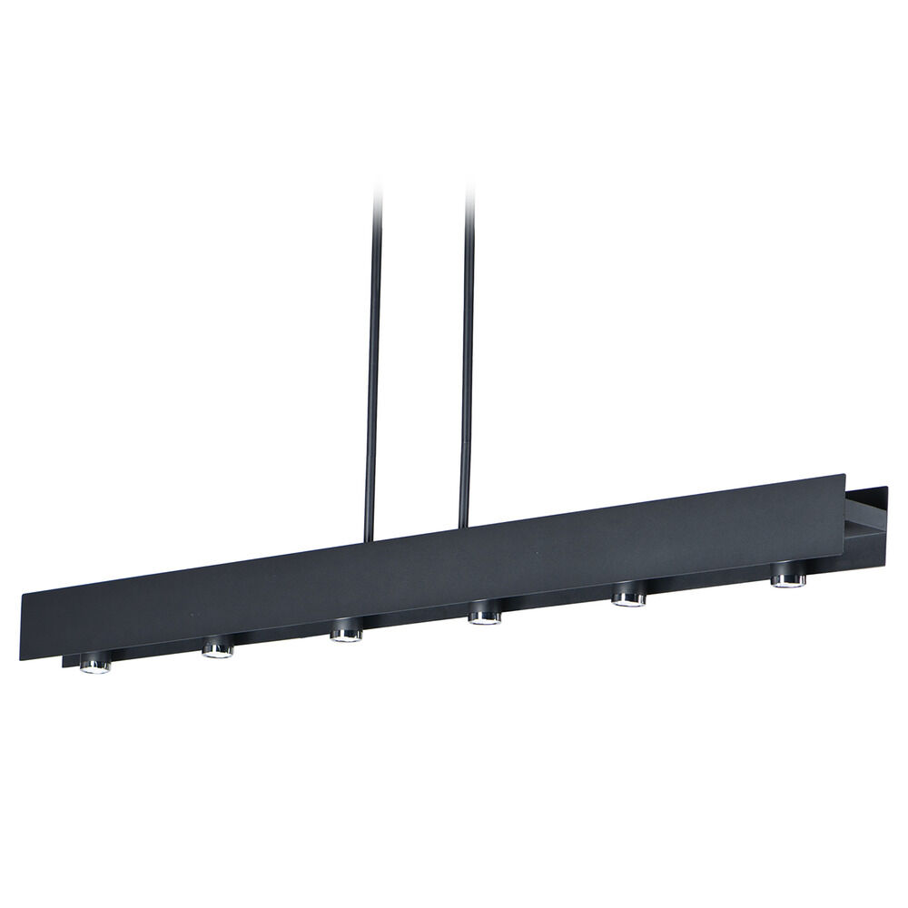 Extruded aluminum girders of Black encase a series of adjustable LED spots accented with Polished Chrome. The lights can be directed to the surface below with high powered functional light. Available in 44 Inch and 54 Inch lengths these pendants work equally well over kitchen islands or rectangular tables. <UL>Warranty: 2 Years<LI>Color Temperature: 3000 / Lumens: 1440 / CRI: 80+ / Rated Life: 50000 Hours / Canopy Included: Yes / Canopy Diameter: 7.75 x 4.75 x 1.5.