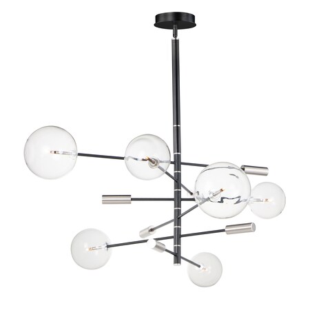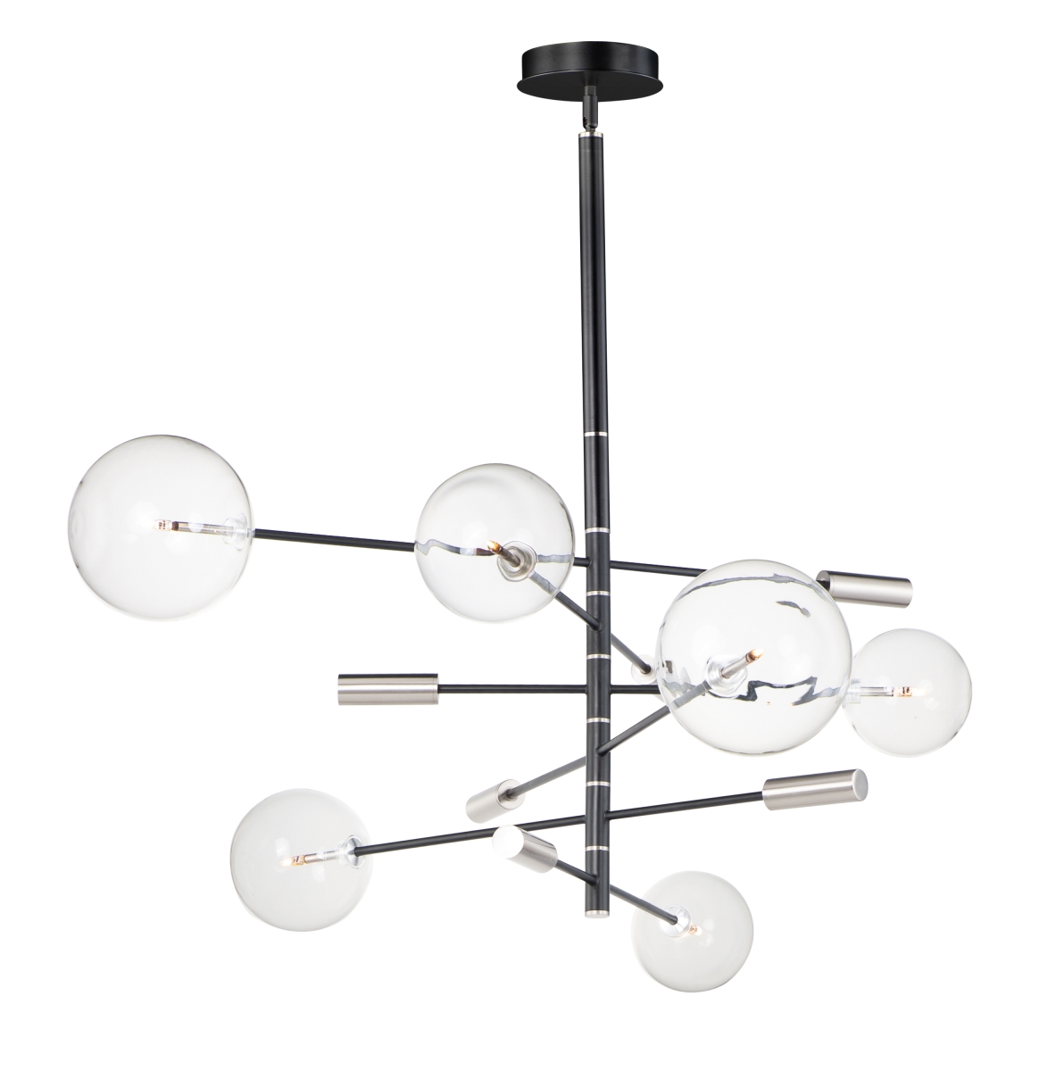 ET2 E25076-18BKSN Global Clear Glass Sphere Shade LED Pendant Ceiling Lighting, 6-Light 9 Total Watts, 20" H x 45" W, Black/Satin Nickel